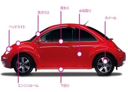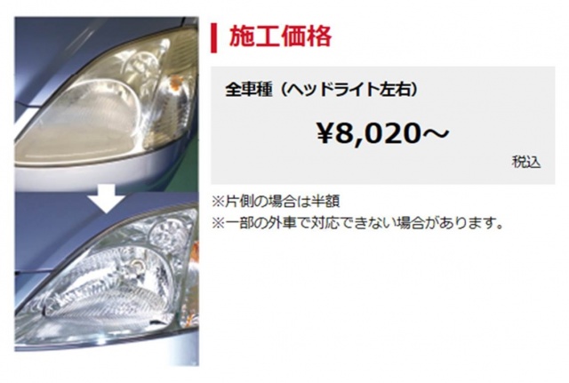 例えば、ブレーキダスト、泥汚れから守る「ホイールコーティング」雨の日の視界を確保する「窓ガラス撥水コーティング」ヘッドライトの黄ばみ・くすみを取り除き、コーティングする「ヘッドライトクリーン&プロテクト」下回りの錆を防止する「アンダーコート」など各部分をコーティングするメニューをご用意いたしました。