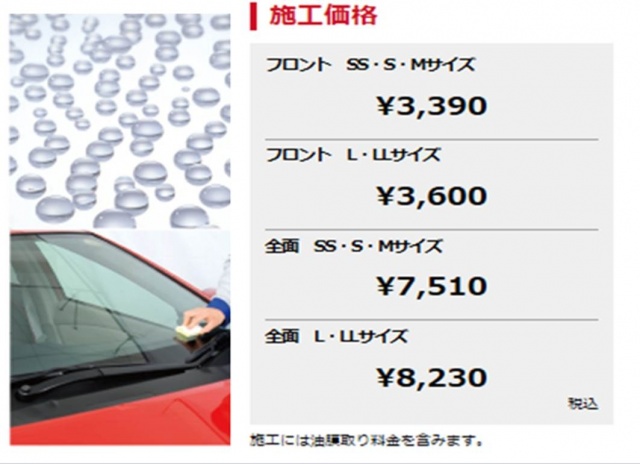 フッ素タイプは油膜取り後の施工により圧倒的な撥水力が長期間持続します。