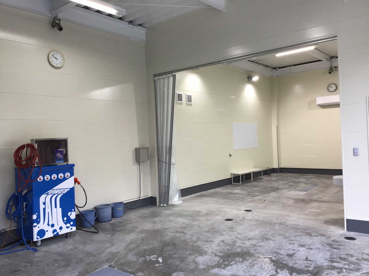 コーティングピットには雨やホコリを寄せ付けない為のカーテンを設置しておりますので、お天気の悪い日でも安心してお任せください!