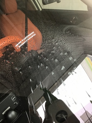 窓ガラスのフッ素コーティングです!雨の日に前方が見にくいと大変ですよね?