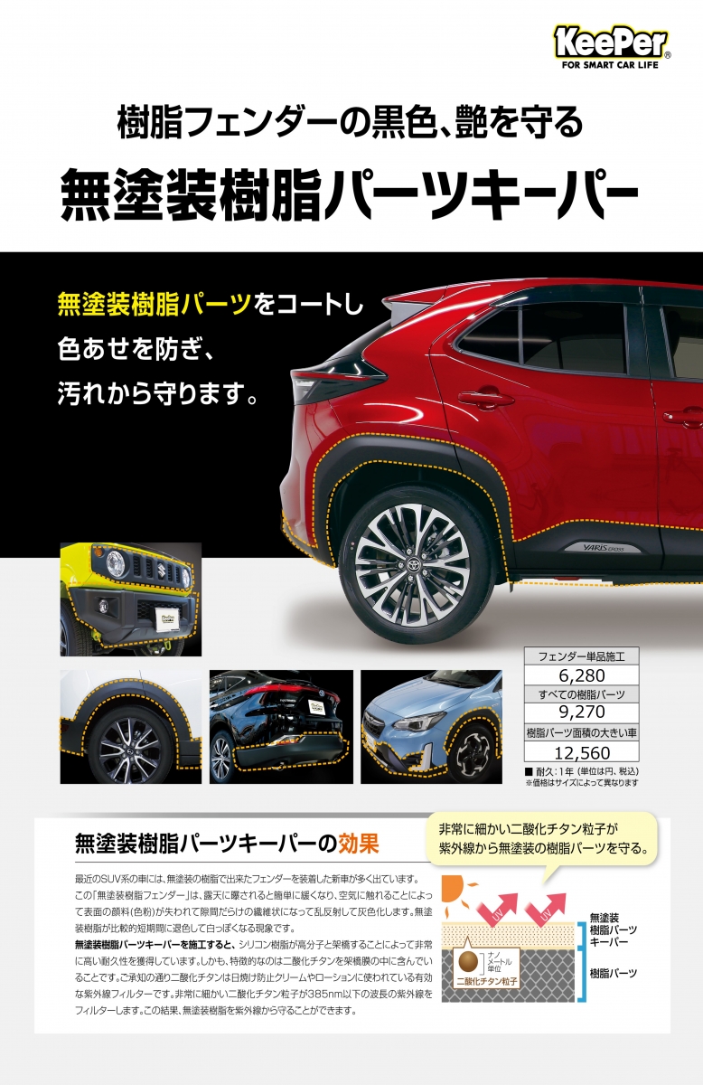 ■特長 ①より強く塗装を守り深く濃いツヤの高密度ガラス被膜②汚れの密着を防ぐ独特な防汚能力を持つECOレジン被膜の最強2層構造。雨の日が楽しみになります。