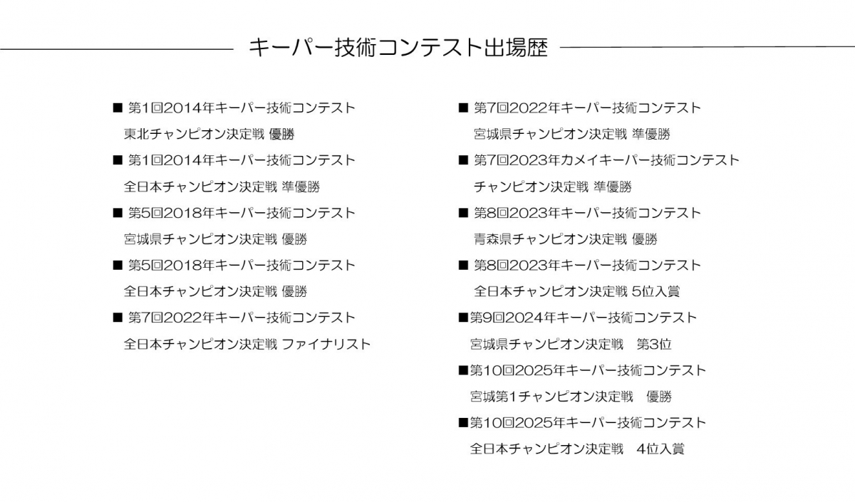 - 第10回 2025年 キーパー技術コンテスト 宮城第一チャンピオン決定戦 3位