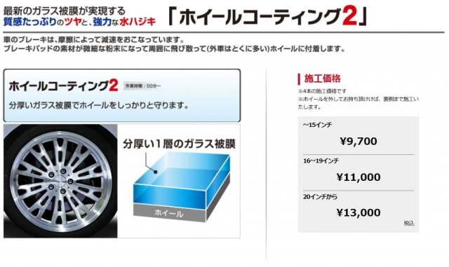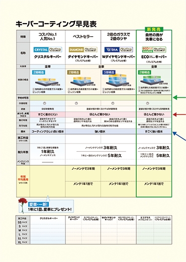 ←プロショップではお車のサイズごとに料金が異なりますので、