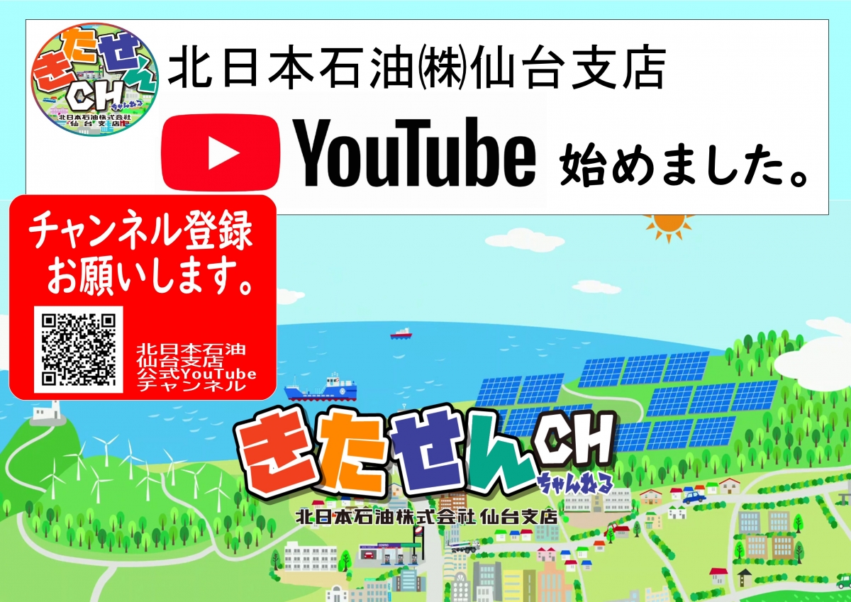 北日本石油仙台支店でYouTube始めました!お得な情報や給油の仕方、ドライブスルー洗車機の使い方等色々な事を配信しているので是非チャンネル登録していただけると幸いです。※素敵なプレゼントのお知らせもしているかも・・・