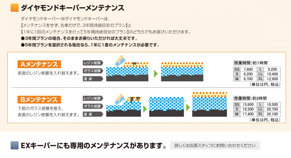 さらにフッ素ガラスコーティング、ホイールコーティング、レンズコーティングが加わり全キーパーシリーズの中で最もプレミアムなプラン。