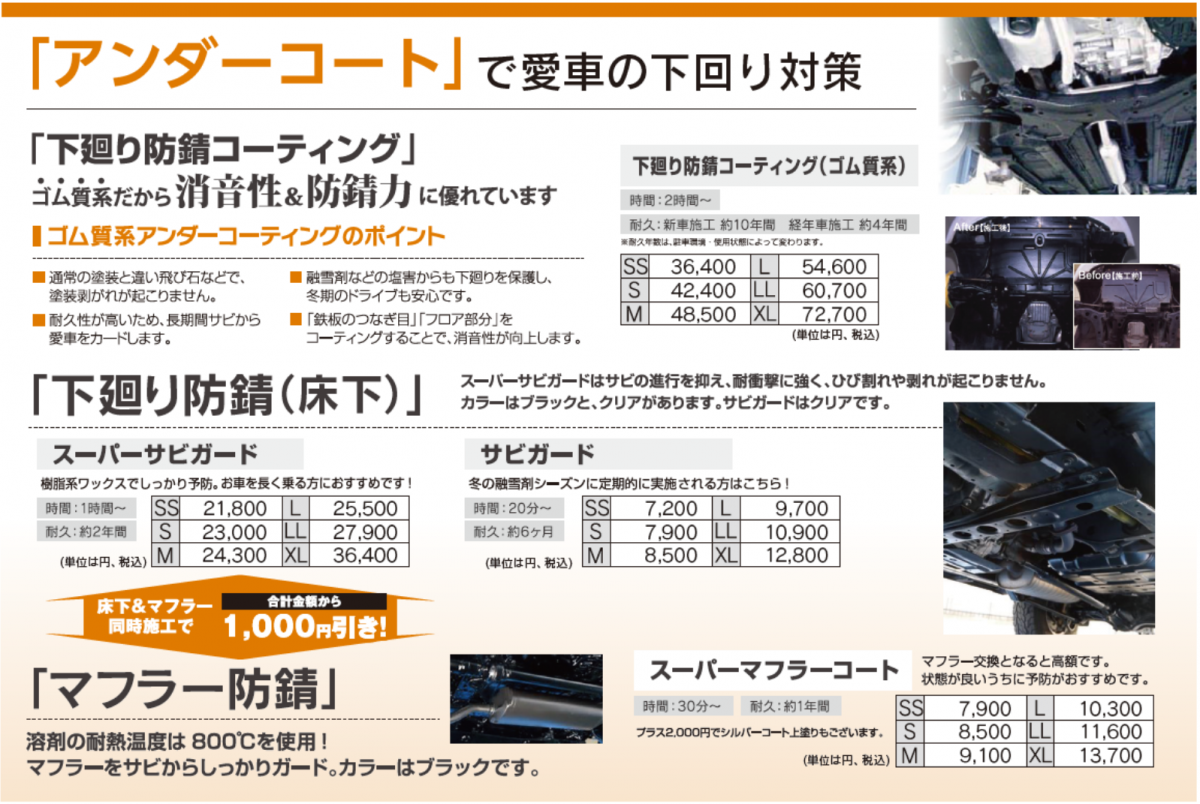 下廻りを【サビ】から守る、 アンダーコートも施工いたします!