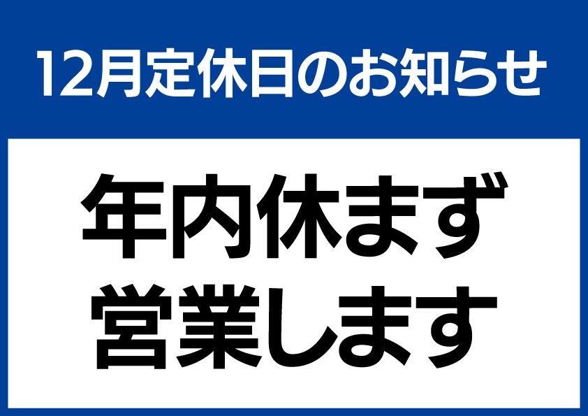 - 水曜日(祝日除く) ※12月は休まず営業