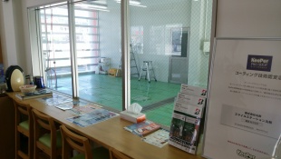 新店舗に新たにコーティングブースを完備致しました!完全無風で埃がたたずさらにエアコンも完備しました。コーテイング作業風景も待合室から確認出来ます。
