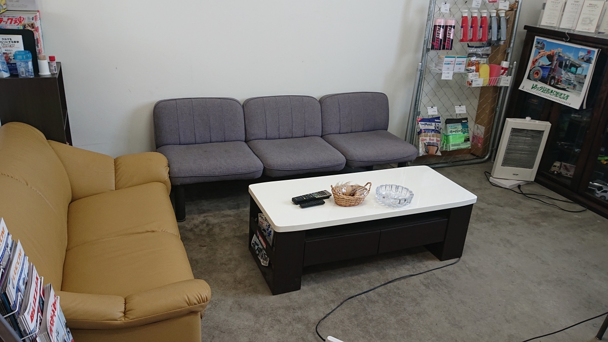 待合室&無料の代車もございますのでお出かけしても待っていてもオッケー☆⌒d(´∀`)ノです。