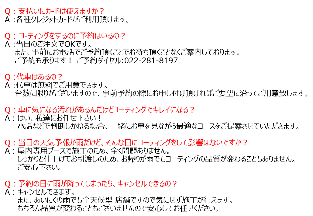 仙台名取北店 大人気★★★★★コーティング!気になるメニューをクリック!