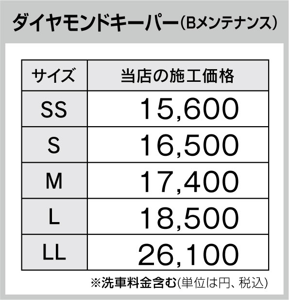 ※多賀城店では、施工後しっかりと施工出来ているかご確認させて頂く為、点検手洗い洗車が上記の料金に含まれます。