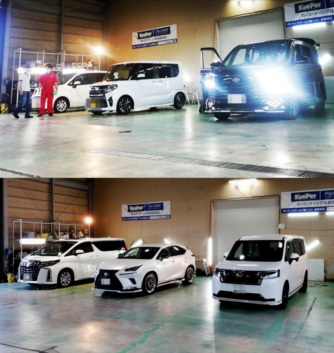 コーティングは専用ブースにて作業致します。照明や道具類、純水器すべてにおいて最高の仕上がりを提供できる環境を作っております。