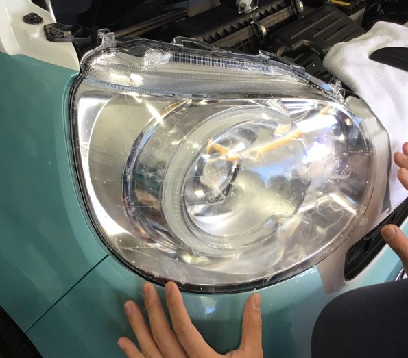 ヘッドライトを磨きコーティングしてから、ウインドフィルムを張るように、ヘッドライトをフィルムで保護します。