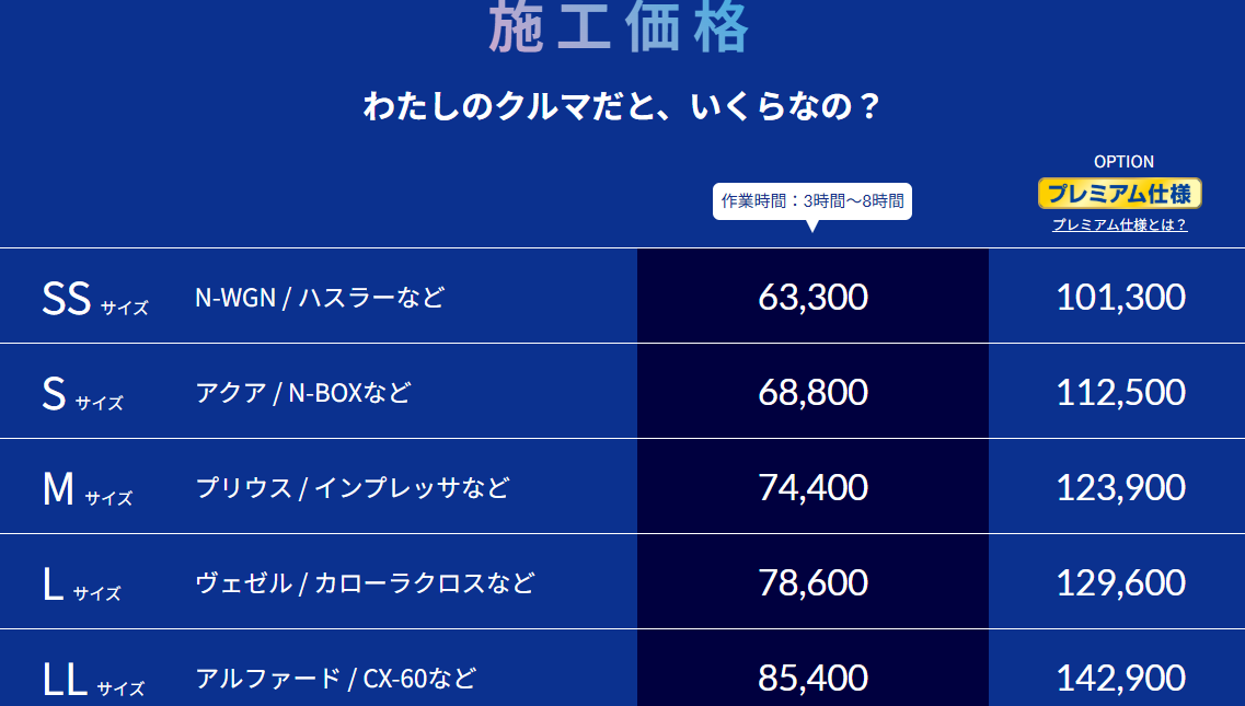 年間100台以上の実績のある当店にお任せ下さい! LLサイズ、XLサイズの車種も入るコーティングブースを併設し、天候に左右されずにコーティングが施工可能です。