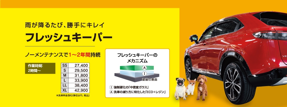 クリスタルキーパーから最高級のEXキーパーまで、さまざまなコーティングが施工できます。