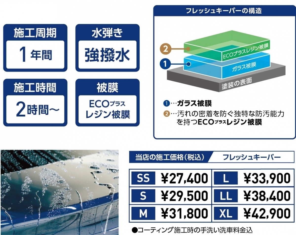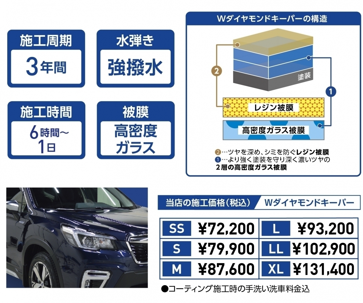 ■全面ガラス施工 【SS?Mサイズ 7,650円 /L/LLサイズ 8,380円】