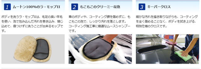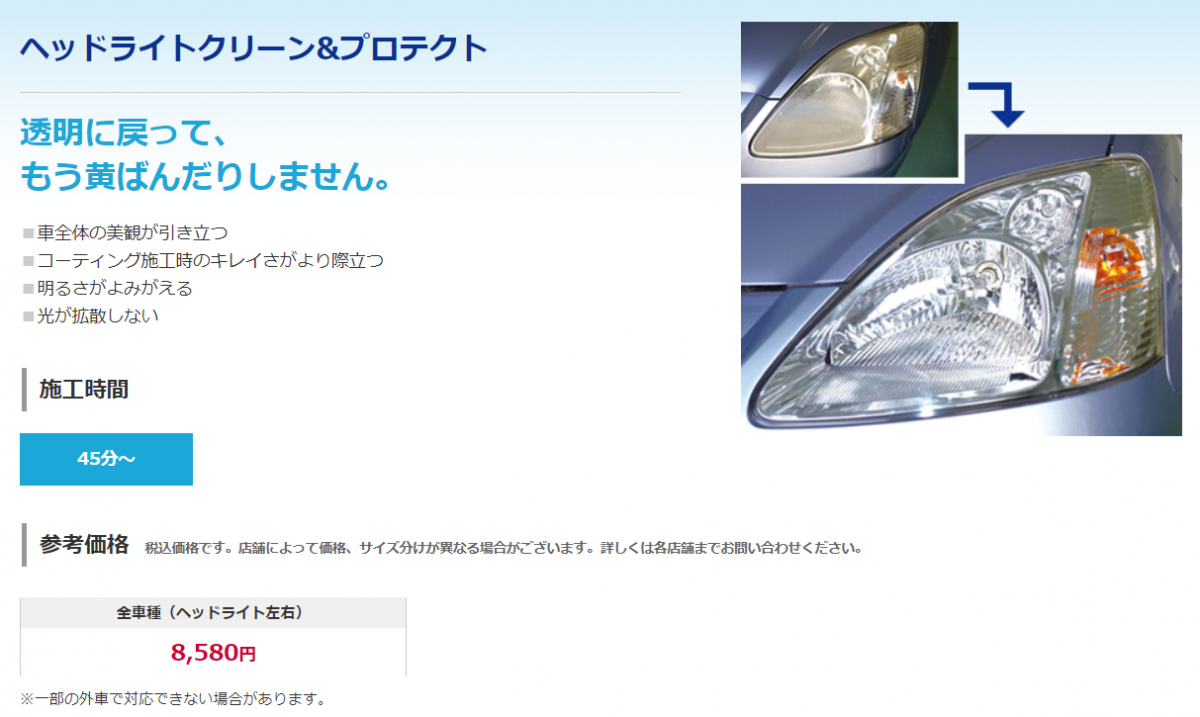 ■持続期間・施工時間 コーティング被膜寿命は1年以上。 約2時間〜