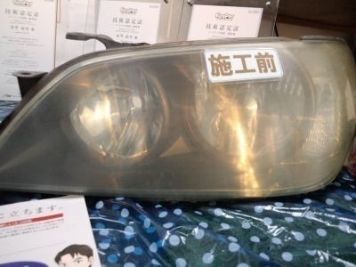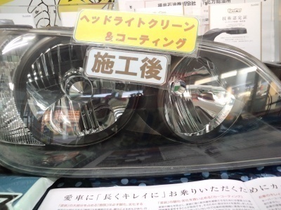 ヘッドライトの黄ばみ・くすみを取り除きコーティングします。