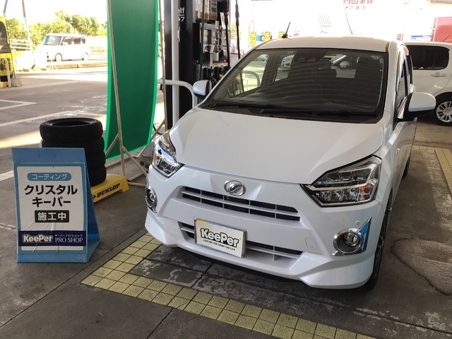 ダイヤモンドキーパーです。1年に1度のメンテナンスで(有料)5年耐久又はノーメンテナンスで3年耐久です。当店のオススメは1年に1度のメンテナンスになります。ダイヤモンドキーパー1番の特徴は、施工時に完全に乾いた状態で施工いたしますので、コーティングに厚みが出てきます。当店では、お客様に大満足して頂ける様にスピード重視の施工は致しません。しっかり確実に施工を行いたいので、一泊二日頂いています。もちろん代車もございます。まずは、ご相談お待ちしております。 福井石油 宮崎北店 所長本田