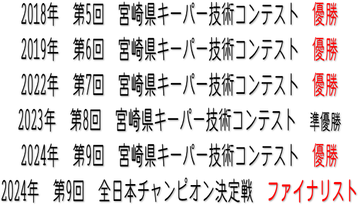 キーパー技術コンテスト 宮崎県チャンピオン在籍店として