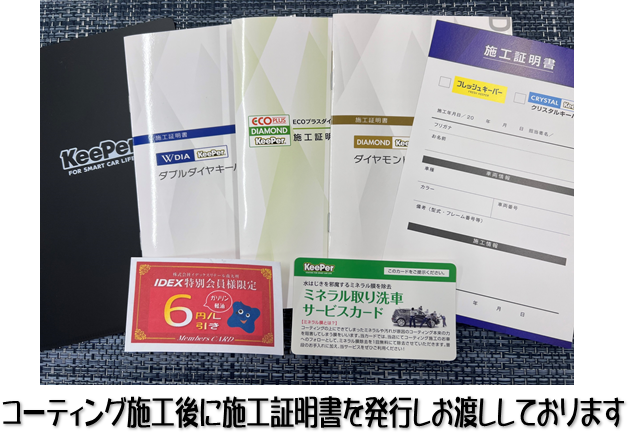 ※キーパー施工車価格での対応は「施工証明書」の提示が必要となります。