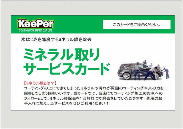 コーティング施工後、『1ヶ月点検カード』をお渡し致します。
