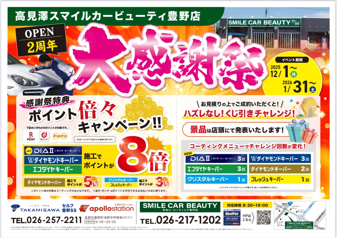 SMILE CAR BEAUTY 2周年記念キャンペーン ♡開催中♡
