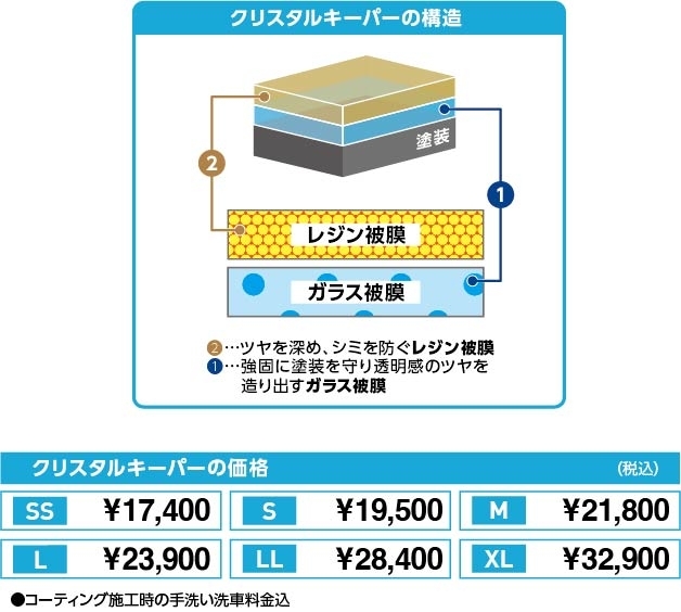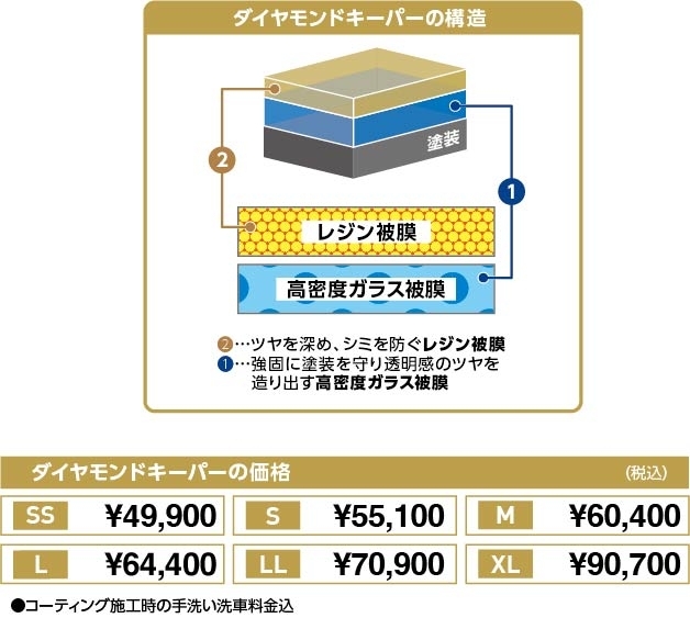 ダイヤモンドキーパーは、クリスタルキーパーよりもガラス被膜の密度が高く、厚みも倍。