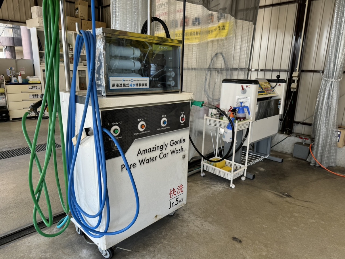 水道水に含まれるイオンや塩類を通さないRo膜装置で濾過された純水で大切な愛車をスッキリキレイに洗い上げます。