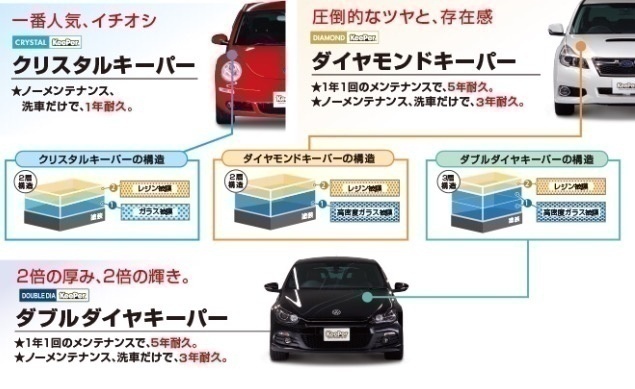 当店イチオシ!コーティングは、クリスタルキーパーです。1年間水洗いのみで、新車の輝きを保ちます。