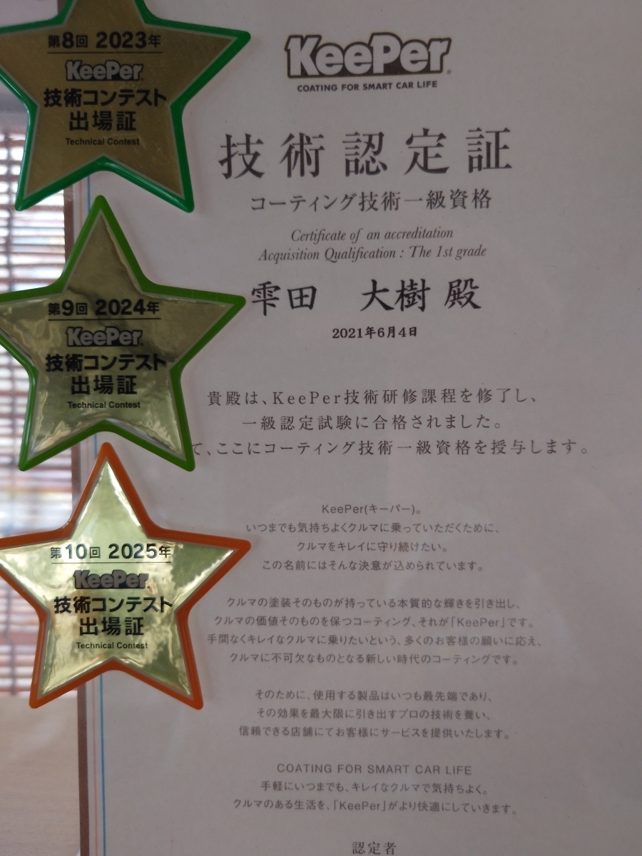 2023・2024・2025年 3年連続キーパー技術コンテスト 2025年アポロステーションキーパーコンテスト出場中✨ キーパーコーティングを確かな技術でお届け致します!