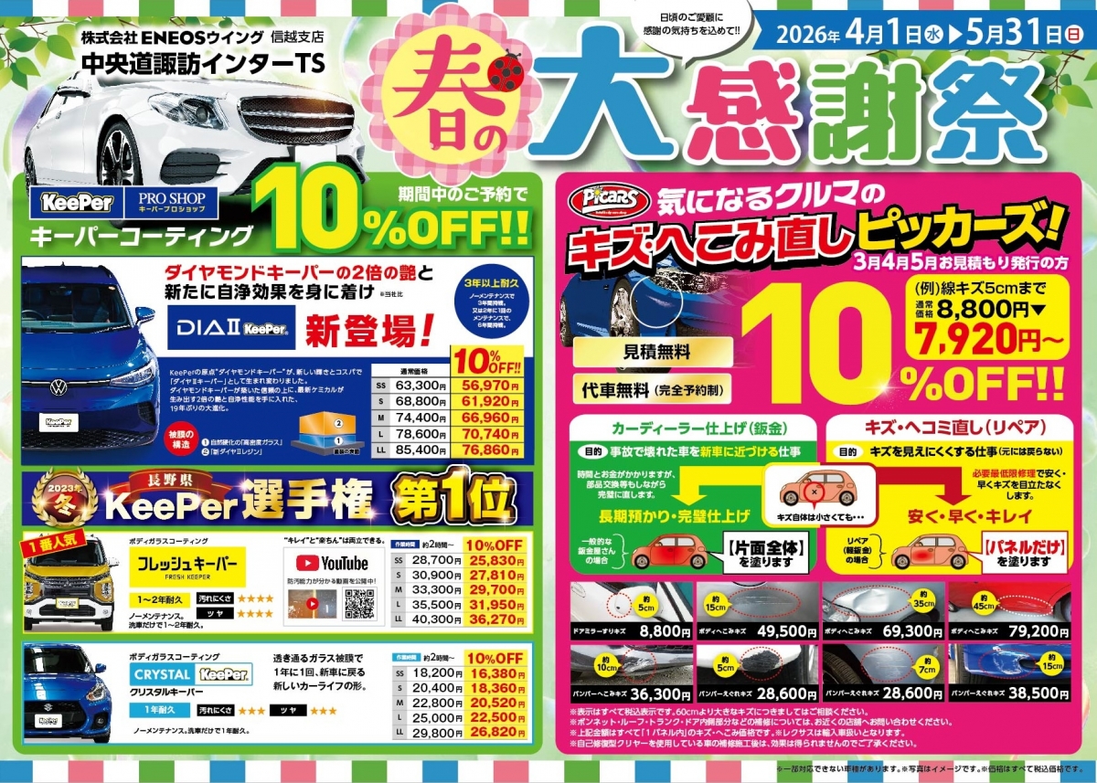 キーパー施工車は上記金額より割引しております。