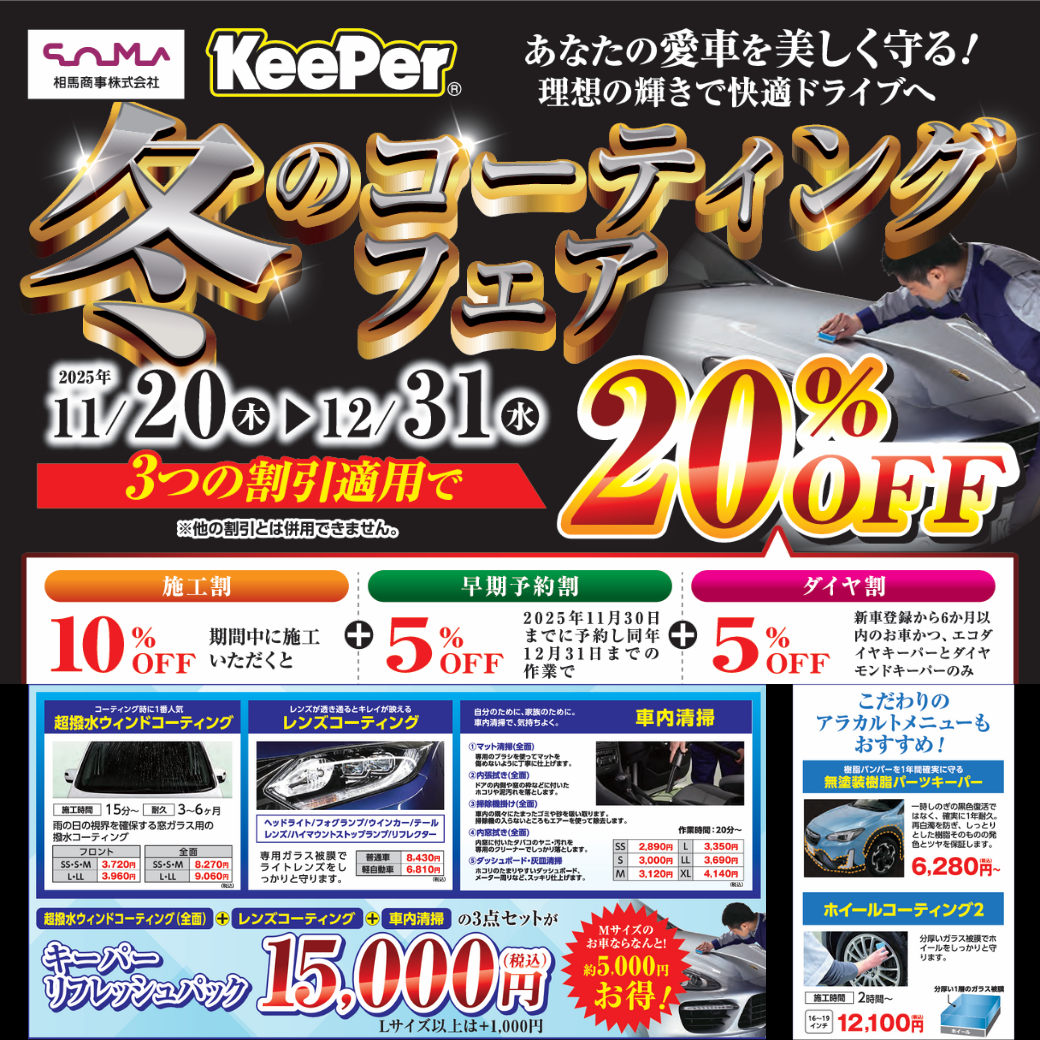 窓ガラス・ホイールなどのコーティングはコチラ!