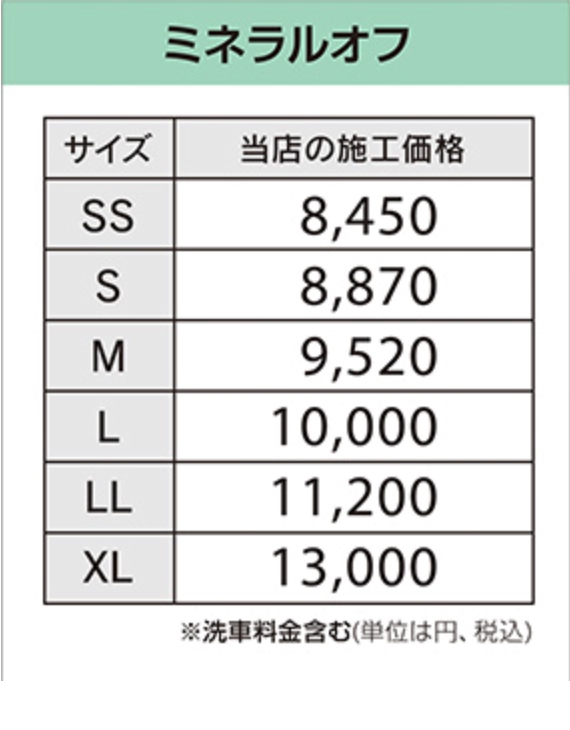 - 洗車8:00~19:30 コーティング9:00~18:00