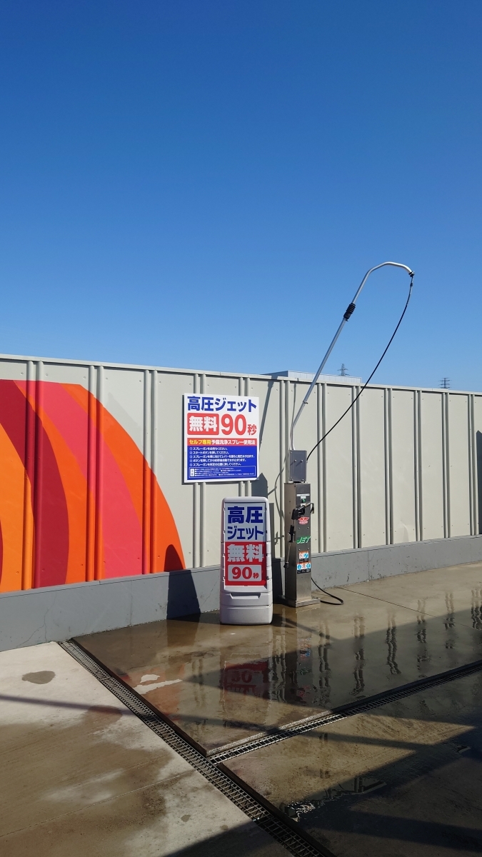 ドライブスルー洗車前に据えてあります予備洗浄スチーム!タイヤハウス内や下廻りの泥や雪を洗浄してから洗車が出来る様になっております。