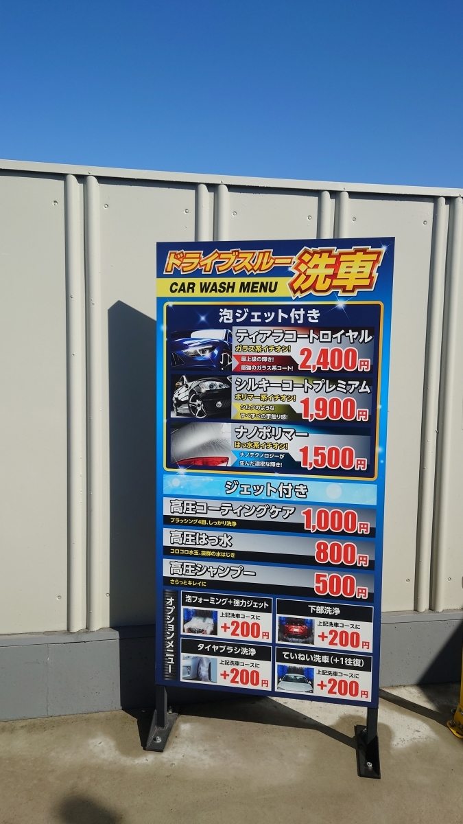 ドライブスルー洗車のメニューも豊富!サイドメニューアラカルトもあります。