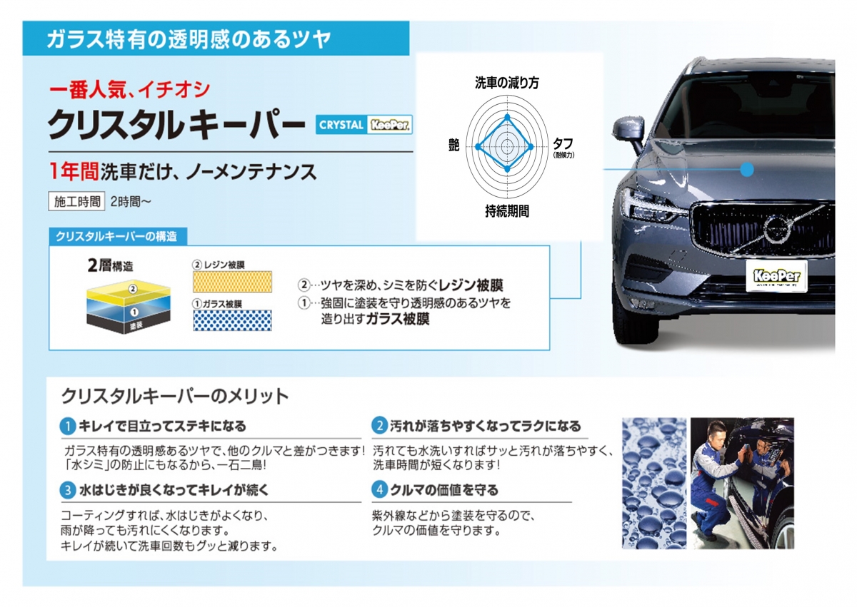 一番スタンダードなコーティングです!ガラス特有の美しい艶を1年間試してみませんか♪