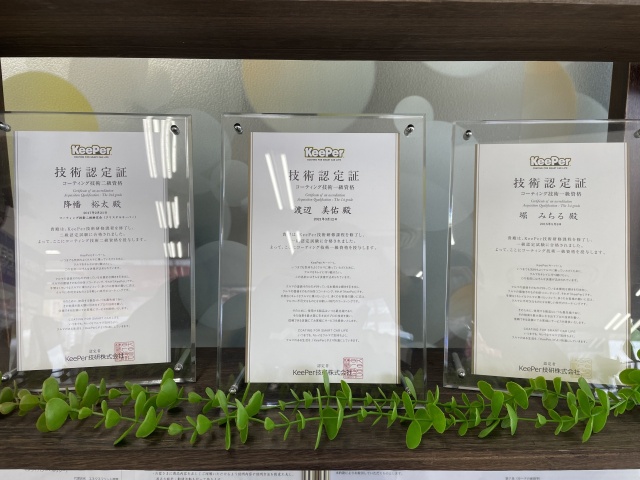 A:軽研磨の施工(ダイヤモンドキーパー・ダブルダイヤキーパー施工時、下処理として行います。他クリスタル、ピュアでもオプション可)をすることで、細い髪の毛のようなキズは消せます。 またコーティングがキズに入り込み、見えづらくなります。爪が引っ掛かる様なキズは消せません。 なお、当店提携工場にて板金塗装も行っております。