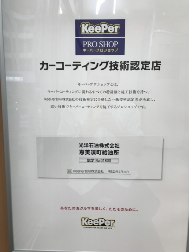 このキーパープロショップ認定証は、その技術でお客様の求める