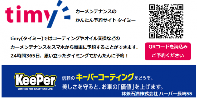 当店では安心のキーパーコーティング無料半年点検付き!! 手洗い洗車を行い、コーティングの状態を確認し、ツヤ・撥水力の回復を行なっております。 アフターフォローも一生懸命させて頂きます(^^) timy予約限定でお使いいただけるお得なクーポンはこちらから↓
