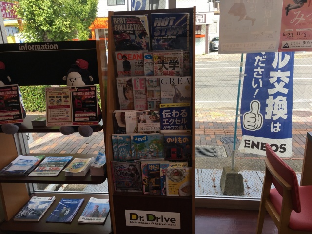 当店はENEOSのサービスステーションの中でも、お客様が待ち時間を快適に過ごしていただける空間を提供することを考えて作られた ENEOS Value Style(エネオス バリュー スタイル)という店舗です。 落ち着いてくつろぎながら、コーティングの仕上がりをお待ちください。 店舗の隣はセブンイレブンです。また、当店の通り沿いにはカーディーラーさんの店舗も多数あります。待ち時間を利用して覗いてみてはいかがでしょうか?