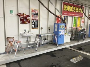 喫煙所はセルフ洗車拭き上げ場にあります( ´Д`)y━・~~