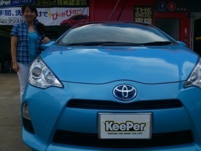 プリウスアクアです。新車購入されて、納車前にダイヤモンドキーパー施工させていただきました。