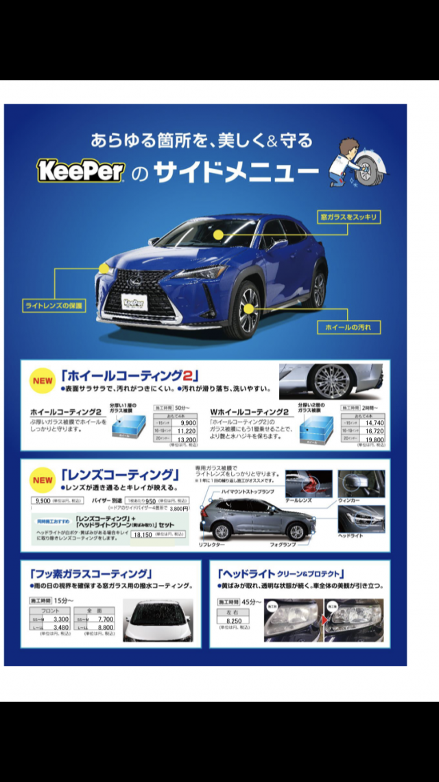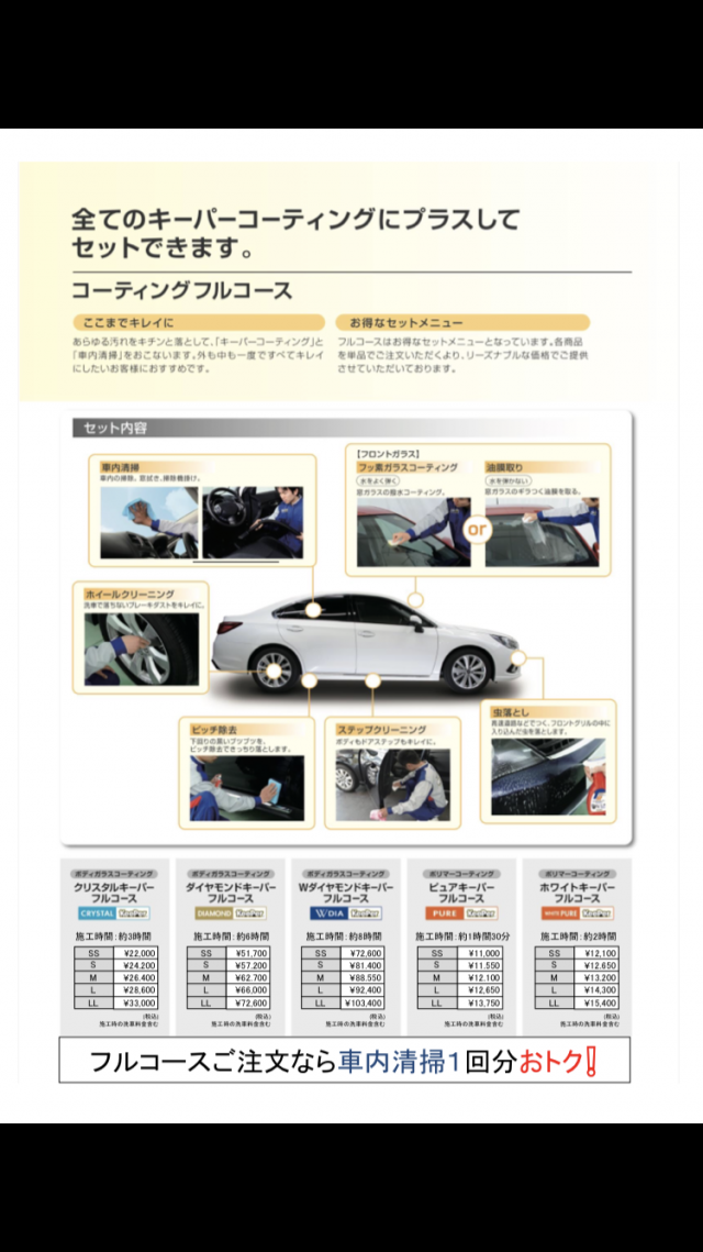「カーコーティング」「アラカル」「車内清掃」、外も中も一度ですべてキレイにしたい方におすすめです