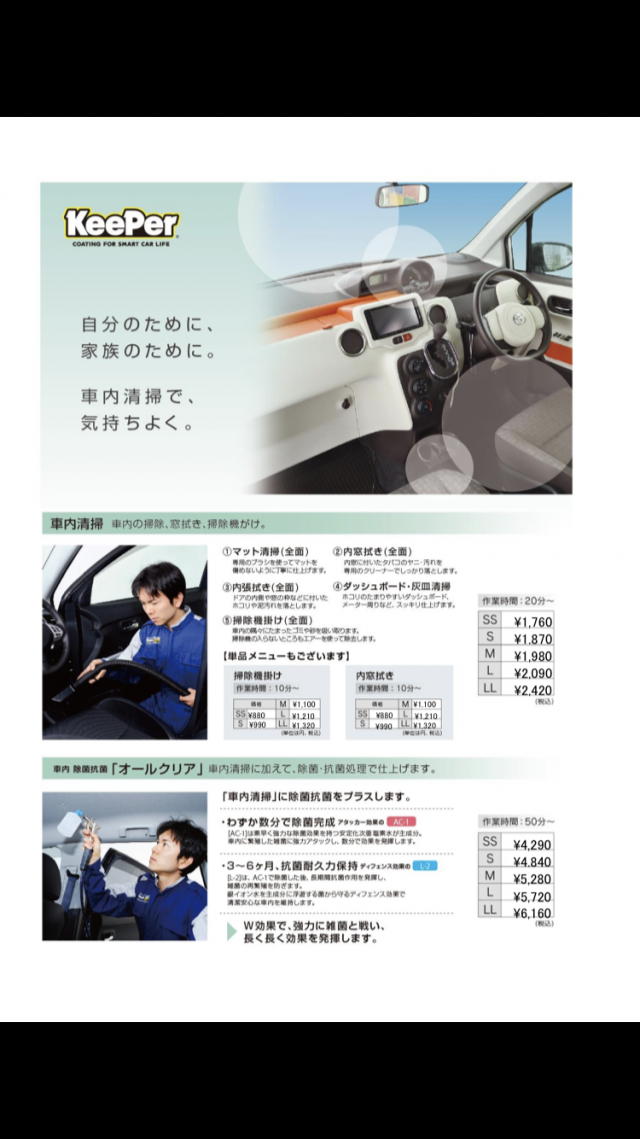 車内清掃 車内清掃もしっかりと。乗った時のフレッシュな気持ちは感動モノです