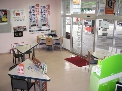 明るく、清潔感のある店内で、お客様ご自身のお車を見ながらゆっくりとお待ちください!!