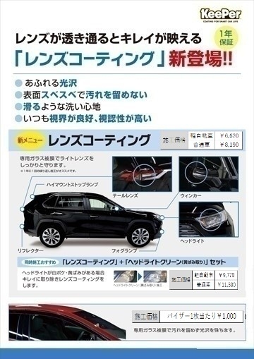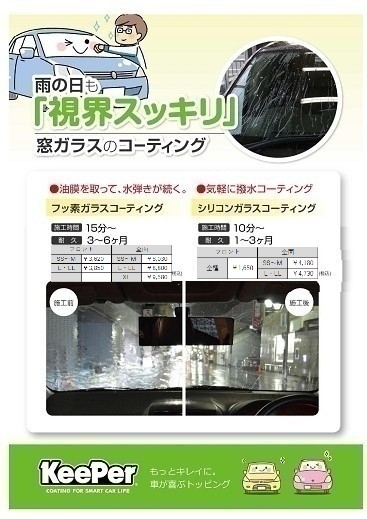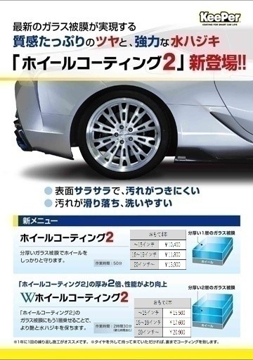 さらに、フッ素ガラスコーティング、ホイールコーティング、レンズコーティング、樹脂フェンダーキーパー、車内清掃が加わったプレミアムなボディガラスコーティングです。