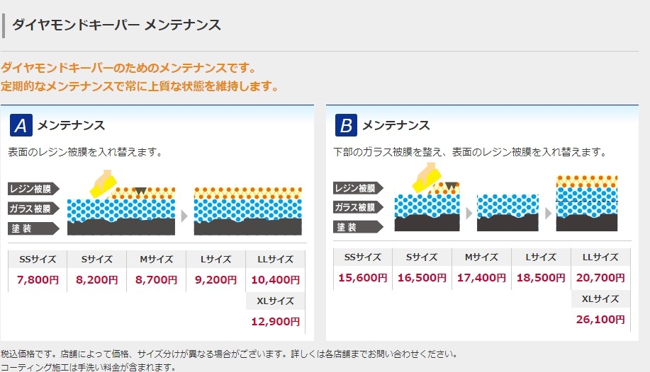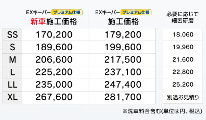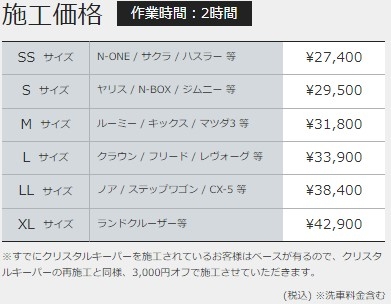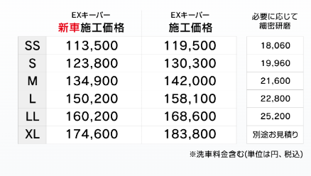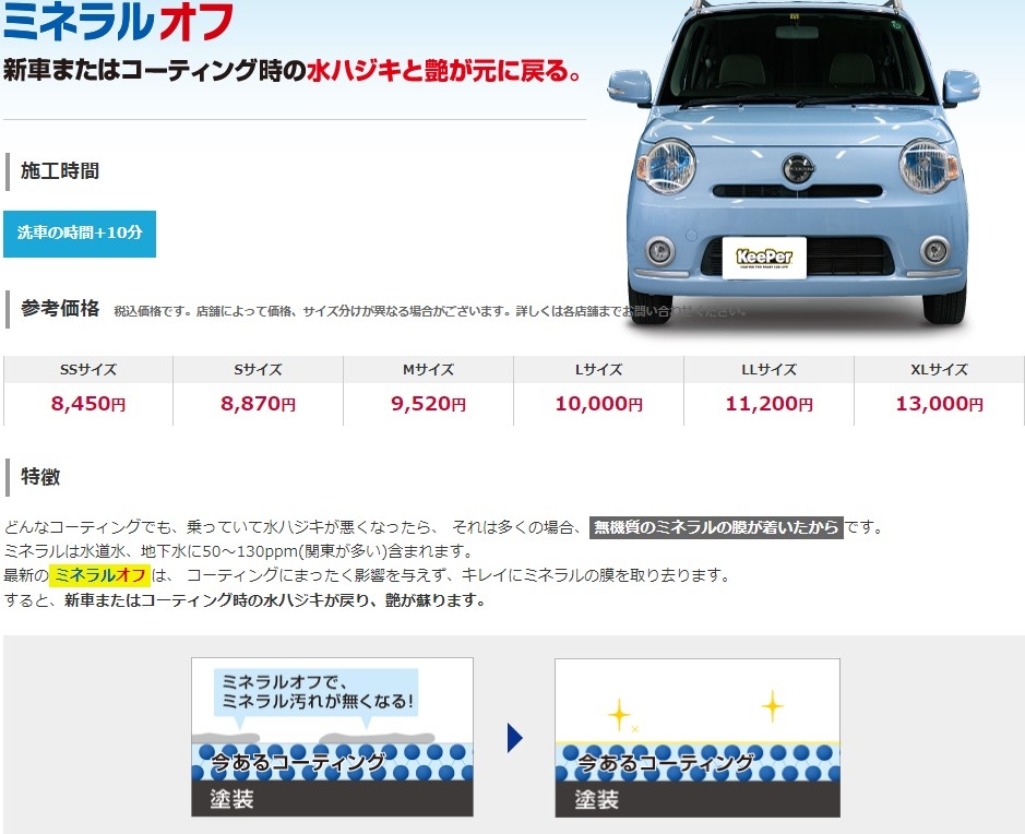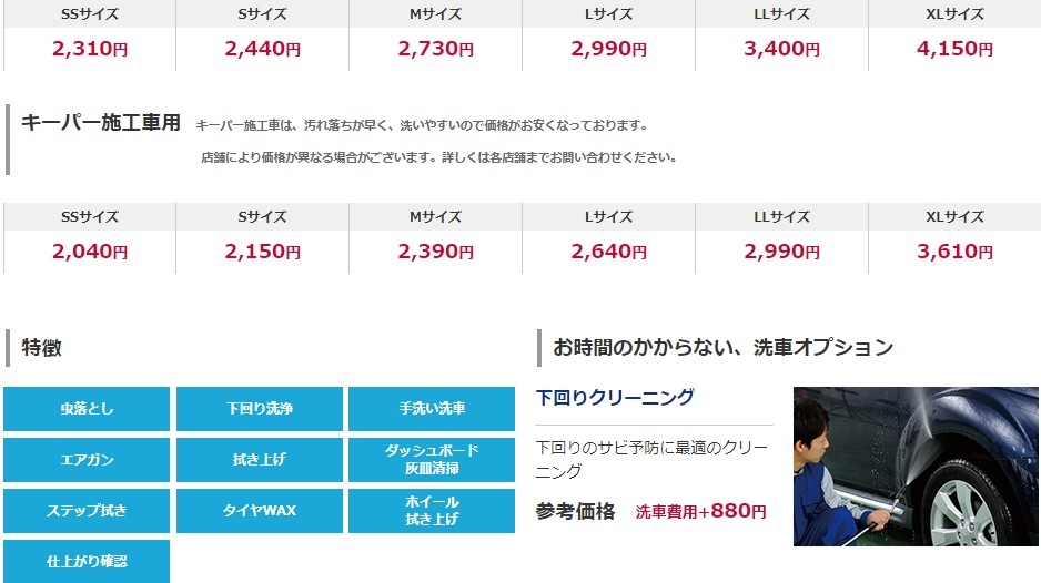 ※キーパー施工車は汚れが簡単に落ち、格段に洗いやすいため価格が一般車に比べ安くなっております