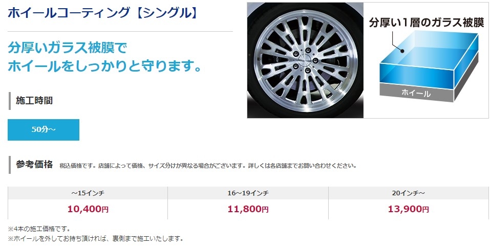 外して持ってきていただければ、ホイール裏面も施工いたします。