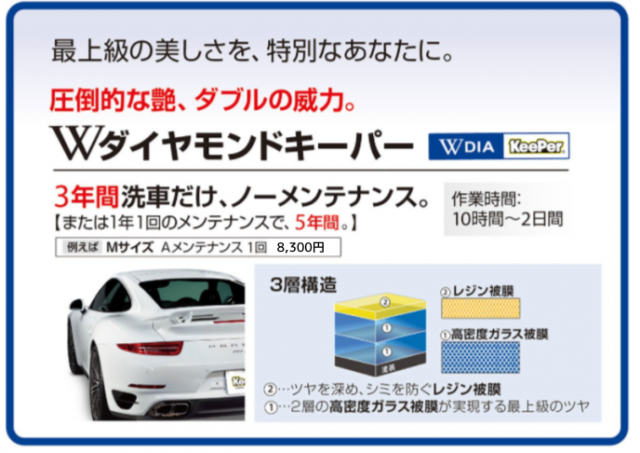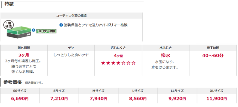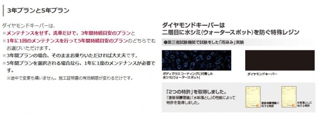 洗車だけで3年耐久(1年に1度のメンテナンス施工で最長5年耐久)
